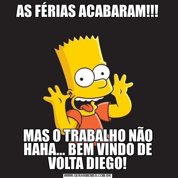 AS FÉRIAS ACABARAM!!! MAS O TRABALHO NÃO HAHA... BEM VINDO DE VOLTA DIEGO!