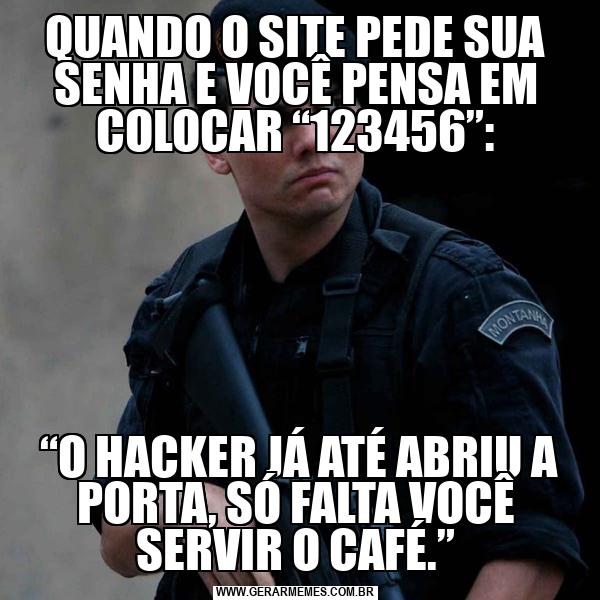 QUANDO O SITE PEDE SUA SENHA E VOCÊ PENSA EM COLOCAR “123456”: “O HACKER JÁ ATÉ ABRIU A PORTA, SÓ FALTA VOCÊ SERVIR O CAFÉ.”