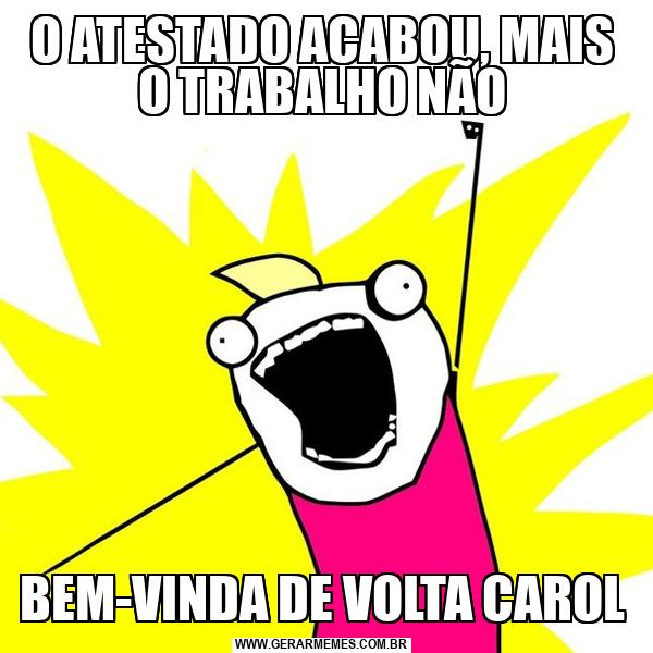 O ATESTADO ACABOU, MAIS O TRABALHO NÃO BEM-VINDA DE VOLTA CAROL