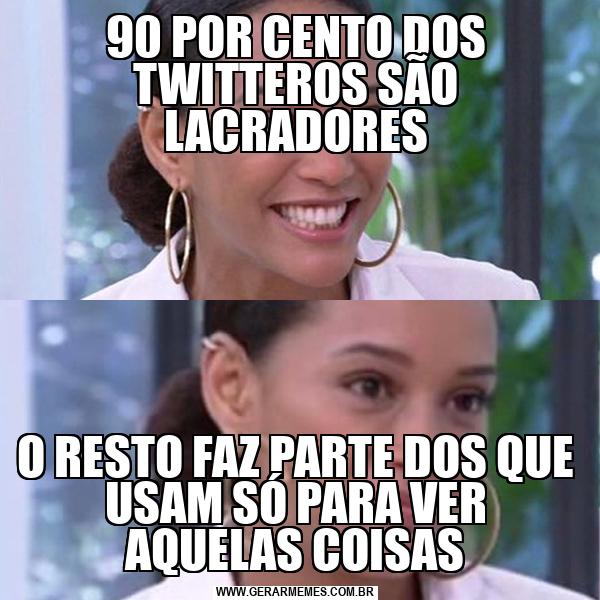 90 POR CENTO DOS TWITTEROS SÃO LACRADORES O RESTO FAZ PARTE DOS QUE USAM SÓ PARA VER AQUELAS COISAS