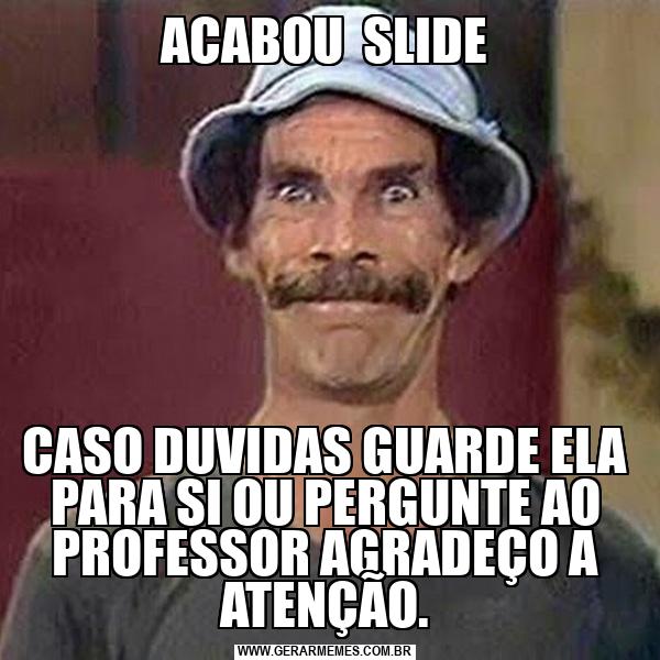 ACABOU SLIDE CASO DUVIDAS GUARDE ELA PARA SI OU PERGUNTE AO PROFESSOR AGRADEÇO A ATENÇÃO.