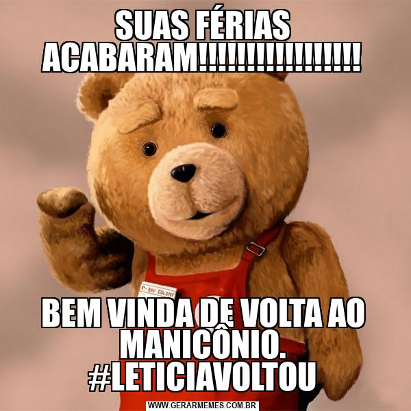 SUAS FÉRIAS ACABARAM!!!!!!!!!!!!!!!!! BEM VINDA DE VOLTA AO MANICÔNIO. #LETICIAVOLTOU