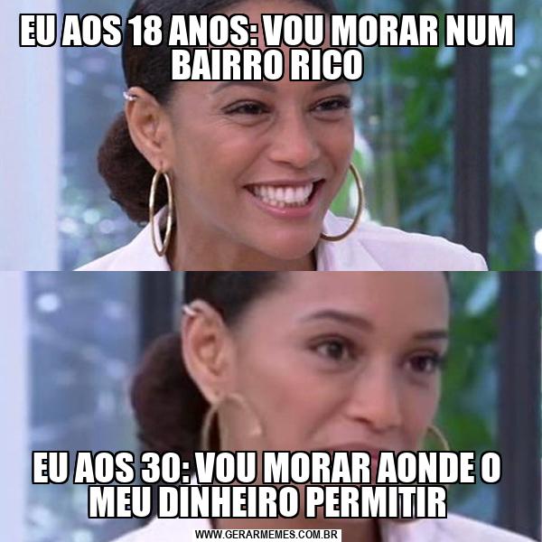 EU AOS 18 ANOS: VOU MORAR NUM BAIRRO RICO EU AOS 30: VOU MORAR AONDE O MEU DINHEIRO PERMITIR