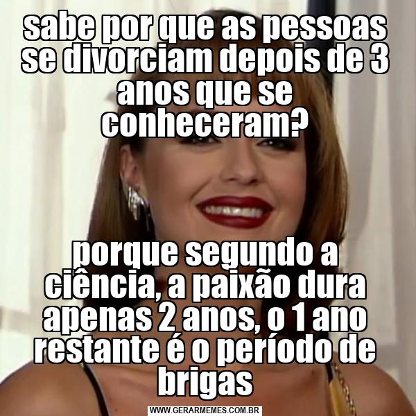 sabe por que as pessoas se divorciam depois de 3 anos que se conheceram? porque segundo a ciência, a paixão dura apenas 2 anos, o 1 ano restante é o período de brigas