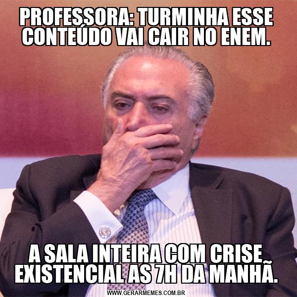 PROFESSORA: TURMINHA ESSE CONTEÚDO VAI CAIR NO ENEM. A SALA INTEIRA COM CRISE EXISTENCIAL AS 7H DA MANHÃ.