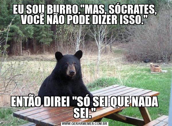 EU SOU BURRO."MAS, SÓCRATES, VOCÊ NÃO PODE DIZER ISSO." ENTÃO DIREI "SÓ SEI QUE NADA SEI."