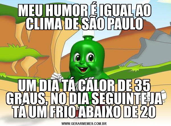 MEU HUMOR É IGUAL AO CLIMA DE SÃO PAULO UM DIA TÁ CALOR DE 35 GRAUS, NO DIA SEGUINTE JA TÁ UM FRIO ABAIXO DE 20