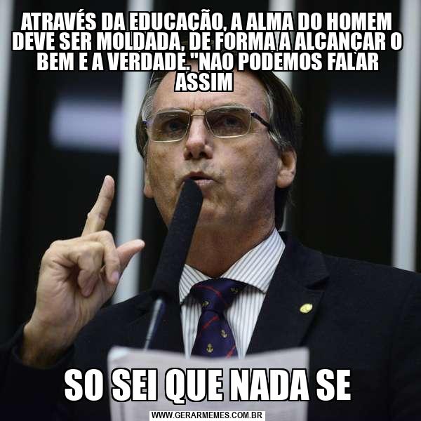 ATRAVÉS DA EDUCAÇÃO, A ALMA DO HOMEM DEVE SER MOLDADA, DE FORMA A ALCANÇAR O BEM E A VERDADE."NAO PODEMOS FALAR ASSIM SO SEI QUE NADA SE