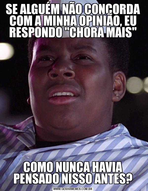 SE ALGUÉM NÃO CONCORDA COM A MINHA OPINIÃO, EU RESPONDO "CHORA MAIS" COMO NUNCA HAVIA PENSADO NISSO ANTES?
