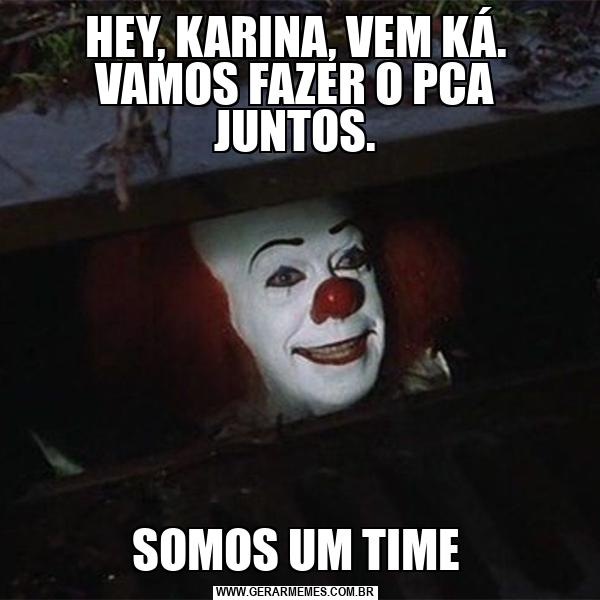 HEY, KARINA, VEM KÁ. VAMOS FAZER O PCA JUNTOS. SOMOS UM TIME