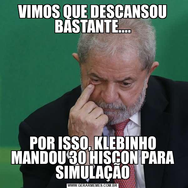 VIMOS QUE DESCANSOU BASTANTE.... POR ISSO, KLEBINHO MANDOU 30 HISCON PARA SIMULAÇÃO