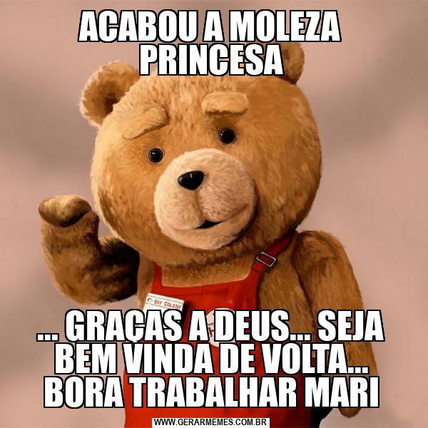 ACABOU A MOLEZA PRINCESA ... GRAÇAS A DEUS... SEJA BEM VINDA DE VOLTA... BORA TRABALHAR MARI