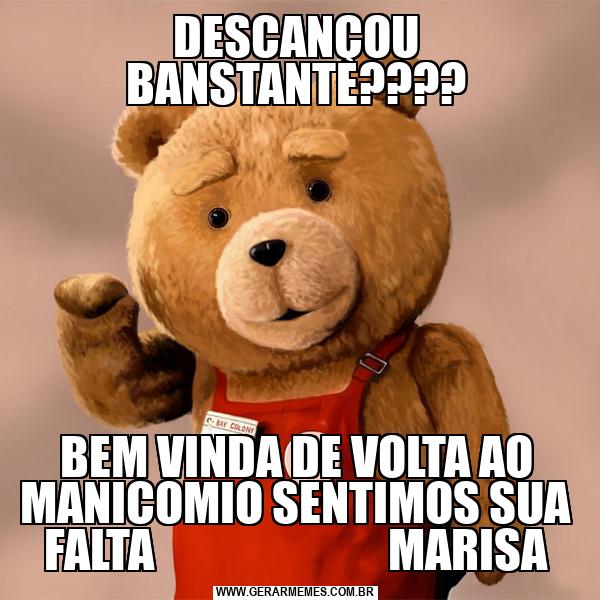 DESCANÇOU BANSTANTE???? BEM VINDA DE VOLTA AO MANICOMIO SENTIMOS SUA FALTA MARISA