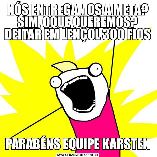 NÓS ENTREGAMOS A META? SIM, OQUE QUEREMOS? DEITAR EM LENÇOL 300 FIOS PARABÉNS EQUIPE KARSTEN