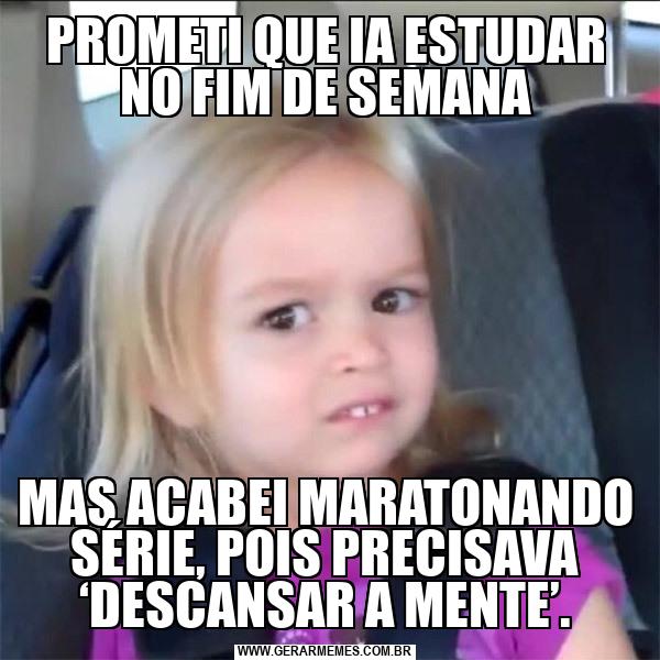 PROMETI QUE IA ESTUDAR NO FIM DE SEMANA MAS ACABEI MARATONANDO SÉRIE, POIS PRECISAVA ‘DESCANSAR A MENTE’.