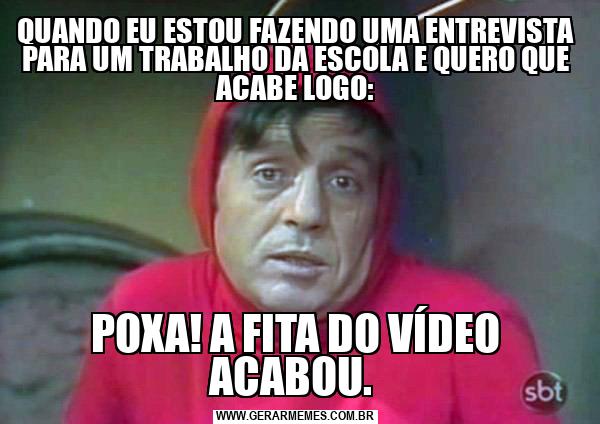 QUANDO EU ESTOU FAZENDO UMA ENTREVISTA PARA UM TRABALHO DA ESCOLA E QUERO QUE ACABE LOGO: POXA! A FITA DO VÍDEO ACABOU.