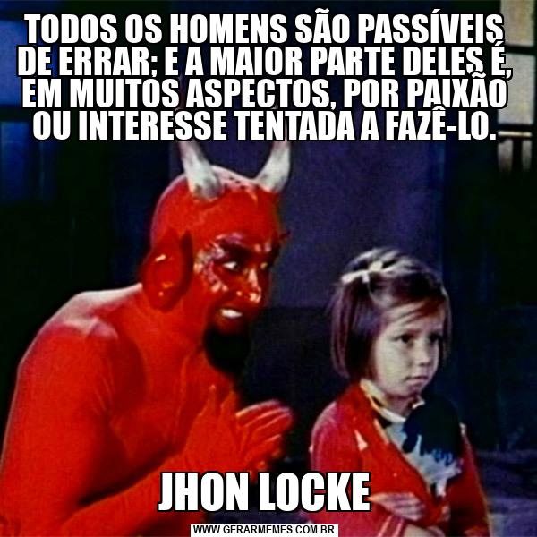 TODOS OS HOMENS SÃO PASSÍVEIS DE ERRAR; E A MAIOR PARTE DELES É, EM MUITOS ASPECTOS, POR PAIXÃO OU INTERESSE TENTADA A FAZÊ-LO. JHON LOCKE