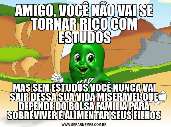 AMIGO, VOCÊ NÃO VAI SE TORNAR RICO COM ESTUDOS MAS SEM ESTUDOS VOCÊ NUNCA VAI SAIR DESSA SUA VIDA MISERÁVEL QUE DEPENDE DO BOLSA FAMILIA PARA SOBREVIVER E ALIMENTAR SEUS FILHOS