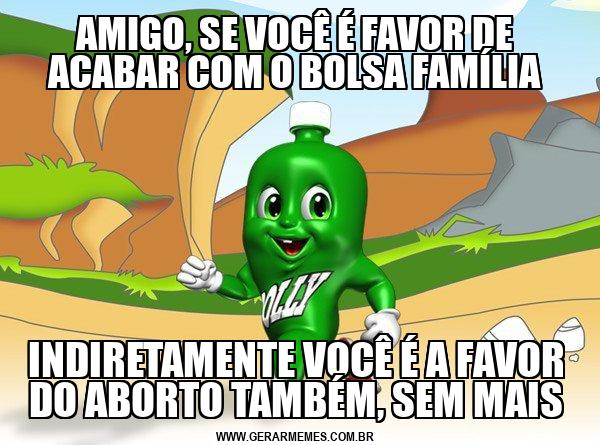 AMIGO, SE VOCÊ É FAVOR DE ACABAR COM O BOLSA FAMÍLIA INDIRETAMENTE VOCÊ É A FAVOR DO ABORTO TAMBÉM, SEM MAIS