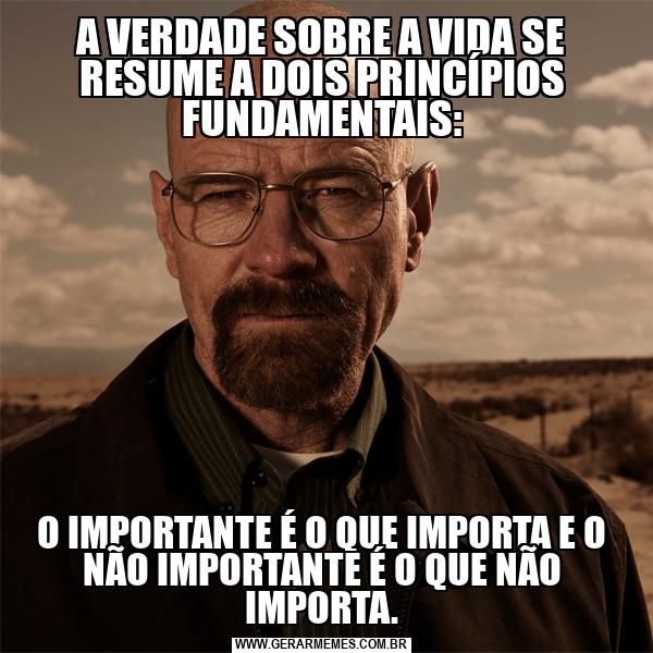 A VERDADE SOBRE A VIDA SE RESUME A DOIS PRINCÍPIOS FUNDAMENTAIS: O IMPORTANTE É O QUE IMPORTA E O NÃO IMPORTANTE É O QUE NÃO IMPORTA.