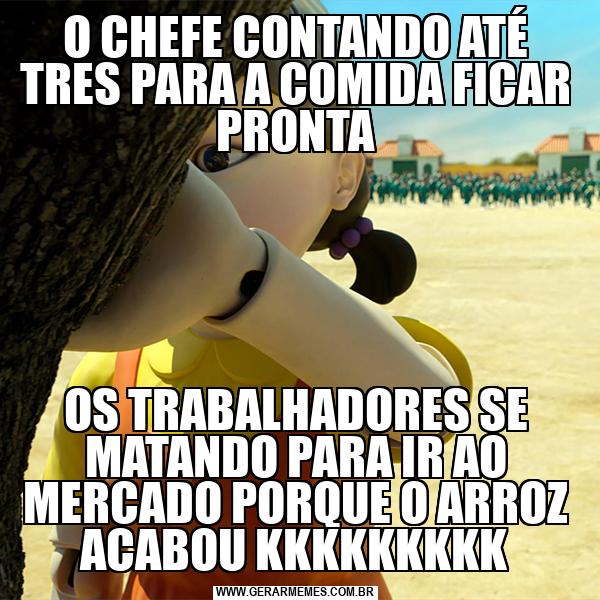 O CHEFE CONTANDO ATÉ TRES PARA A COMIDA FICAR PRONTA OS TRABALHADORES SE MATANDO PARA IR AO MERCADO PORQUE O ARROZ ACABOU KKKKKKKKK
