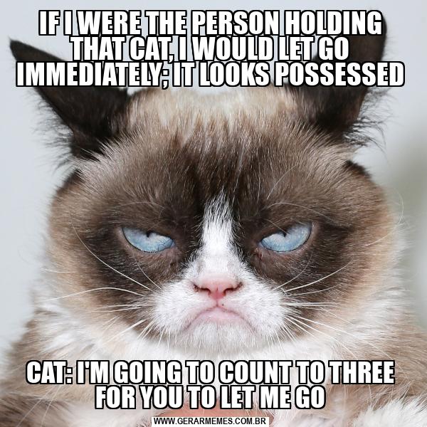 IF I WERE THE PERSON HOLDING THAT CAT, I WOULD LET GO IMMEDIATELY; IT LOOKS POSSESSED CAT: I'M GOING TO COUNT TO THREE FOR YOU TO LET ME GO