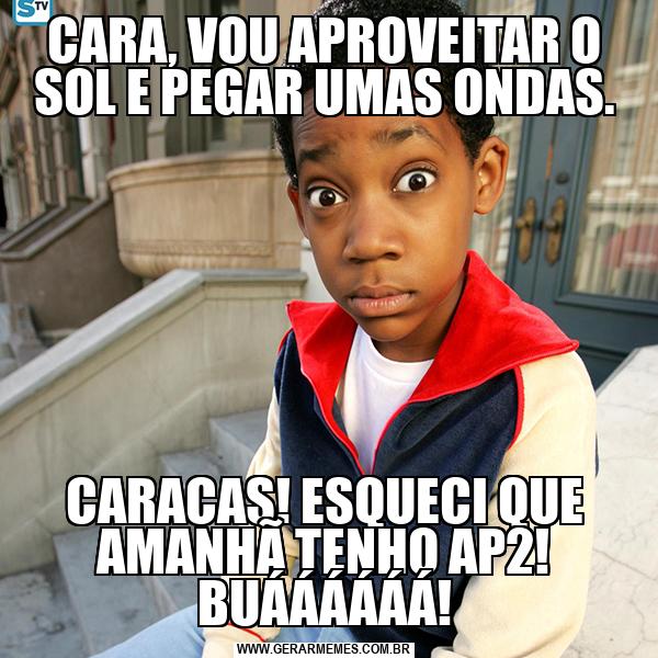CARA, VOU APROVEITAR O SOL E PEGAR UMAS ONDAS. CARACAS! ESQUECI QUE AMANHÃ TENHO AP2! BUÁÁÁÁÁÁ!