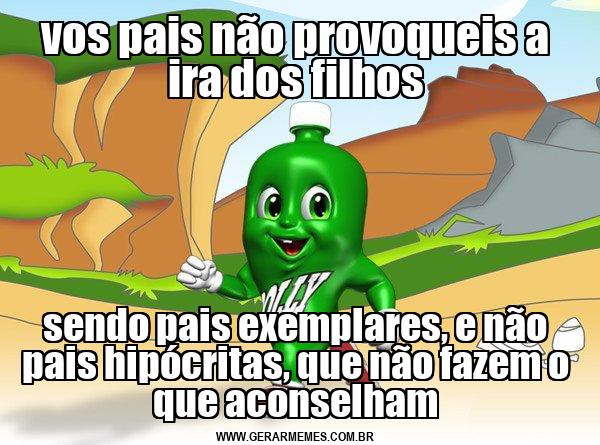 vos pais não provoqueis a ira dos filhos sendo pais exemplares, e não pais hipócritas, que não fazem o que aconselham