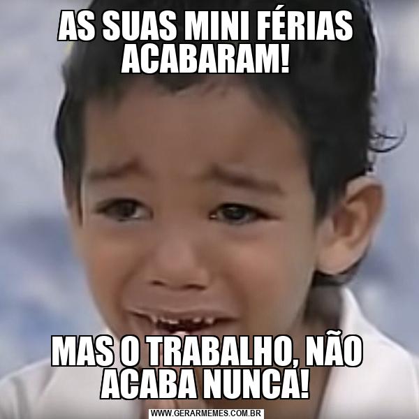 AS SUAS MINI FÉRIAS ACABARAM! MAS O TRABALHO, NÃO ACABA NUNCA!