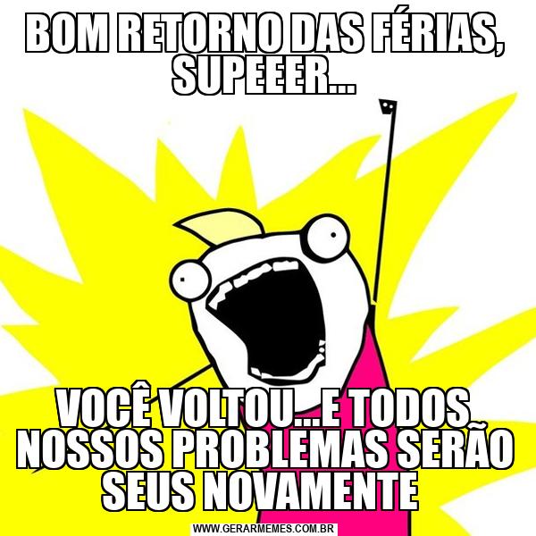 BOM RETORNO DAS FÉRIAS, SUPEEER... VOCÊ VOLTOU...E TODOS NOSSOS PROBLEMAS SERÃO SEUS NOVAMENTE