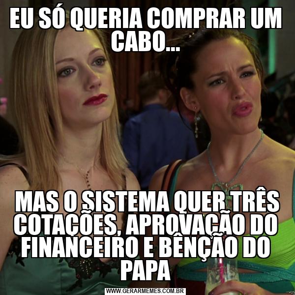 EU SÓ QUERIA COMPRAR UM CABO... MAS O SISTEMA QUER TRÊS COTAÇÕES, APROVAÇÃO DO FINANCEIRO E BÊNÇÃO DO PAPA