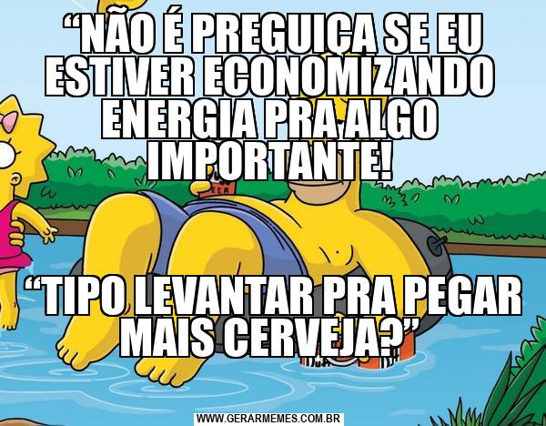 “NÃO É PREGUIÇA SE EU ESTIVER ECONOMIZANDO ENERGIA PRA ALGO IMPORTANTE! “TIPO LEVANTAR PRA PEGAR MAIS CERVEJA?”