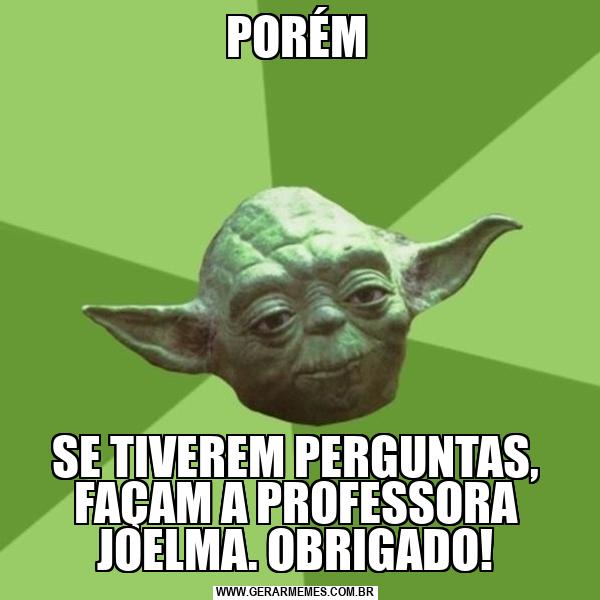 PORÉM SE TIVEREM PERGUNTAS, FAÇAM A PROFESSORA JOELMA. OBRIGADO!