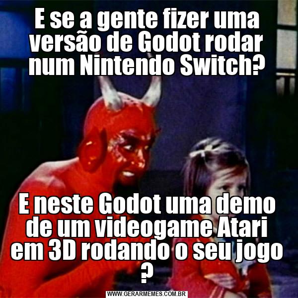 E se a gente fizer uma versão de Godot rodar num Nintendo Switch? E neste Godot uma demo de um videogame Atari em 3D rodando o seu jogo ?