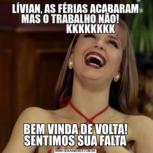 LÍVIAN, AS FÉRIAS ACABARAM MAS O TRABALHO NÃO! KKKKKKKK BEM VINDA DE VOLTA! SENTIMOS SUA FALTA