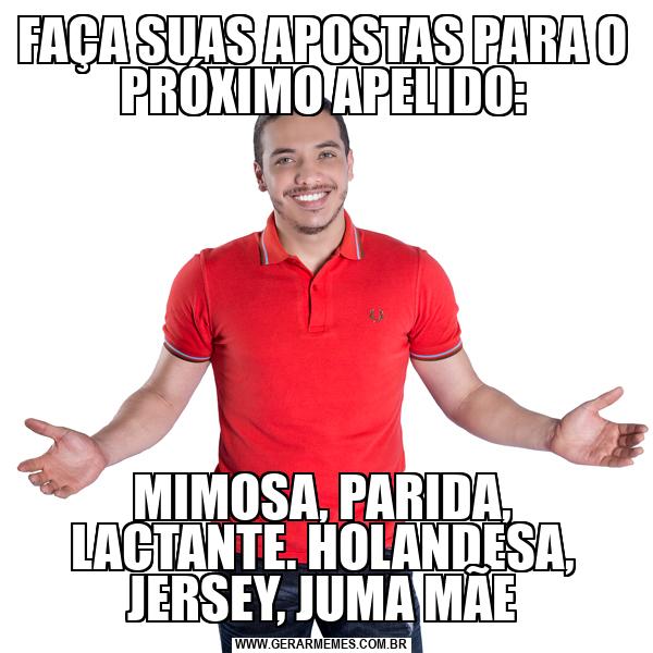 FAÇA SUAS APOSTAS PARA O PRÓXIMO APELIDO: MIMOSA, PARIDA, LACTANTE. HOLANDESA, JERSEY, JUMA MÃE