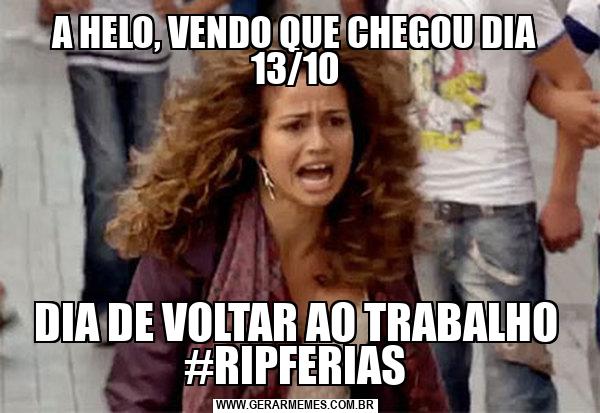 A HELO, VENDO QUE CHEGOU DIA 13/10 DIA DE VOLTAR AO TRABALHO #RIPFERIAS