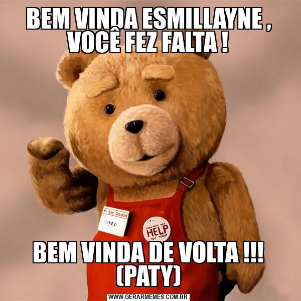 BEM VINDA ESMILLAYNE , VOCÊ FEZ FALTA ! BEM VINDA DE VOLTA !!! (PATY)