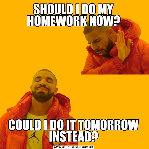 SHOULD I DO MY HOMEWORK NOW? COULD I DO IT TOMORROW INSTEAD?