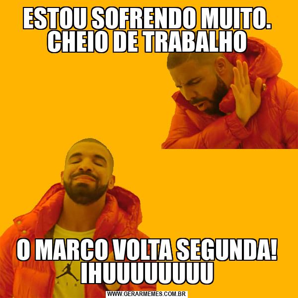 ESTOU SOFRENDO MUITO. CHEIO DE TRABALHO O MARCO VOLTA SEGUNDA! IHUUUUUUUU