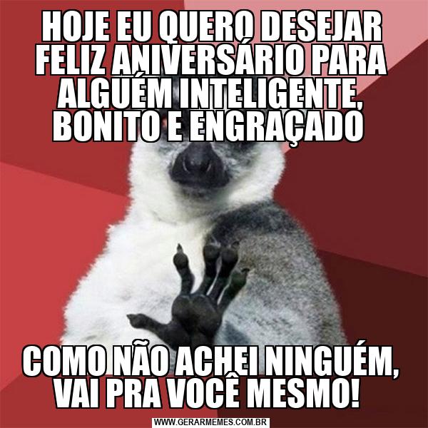 HOJE EU QUERO DESEJAR FELIZ ANIVERSÁRIO PARA ALGUÉM INTELIGENTE, BONITO E ENGRAÇADO COMO NÃO ACHEI NINGUÉM, VAI PRA VOCÊ MESMO!