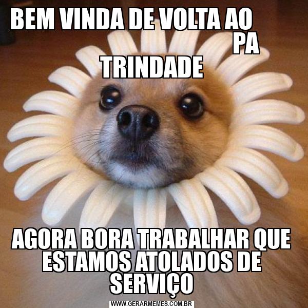 BEM VINDA DE VOLTA AO PA TRINDADE AGORA BORA TRABALHAR QUE ESTAMOS ATOLADOS DE SERVIÇO