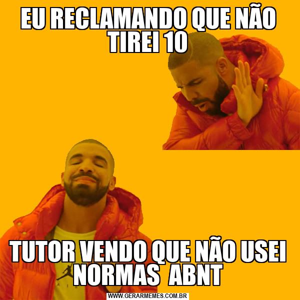 EU RECLAMANDO QUE NÃO TIREI 10 TUTOR VENDO QUE NÃO USEI NORMAS ABNT