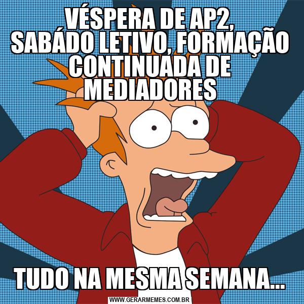 VÉSPERA DE AP2, SABÁDO LETIVO, FORMAÇÃO CONTINUADA DE MEDIADORES TUDO NA MESMA SEMANA...
