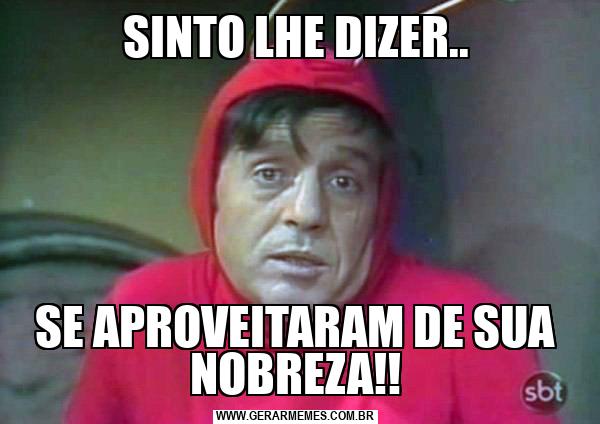 SINTO LHE DIZER.. SE APROVEITARAM DE SUA NOBREZA!!