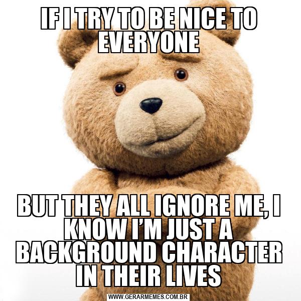 IF I TRY TO BE NICE TO EVERYONE BUT THEY ALL IGNORE ME, I KNOW I’M JUST A BACKGROUND CHARACTER IN THEIR LIVES