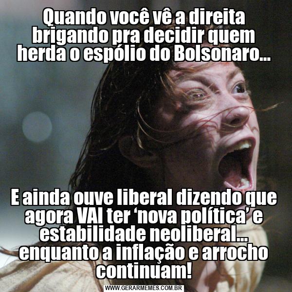 Quando você vê a direita brigando pra decidir quem herda o espólio do Bolsonaro… E ainda ouve liberal dizendo que agora VAI ter ‘nova política’ e estabilidade neoliberal… enquanto a inflação e arrocho continuam!