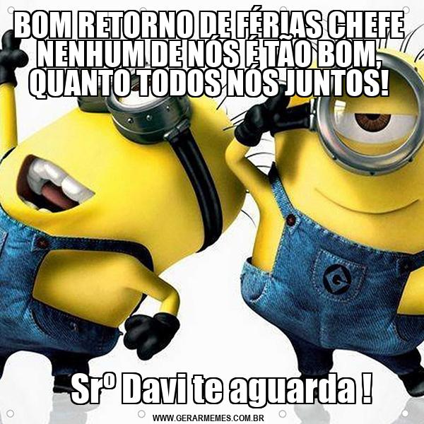 BOM RETORNO DE FÉRIAS CHEFE NENHUM DE NÓS É TÃO BOM, QUANTO TODOS NÓS JUNTOS! Srº Davi te aguarda !