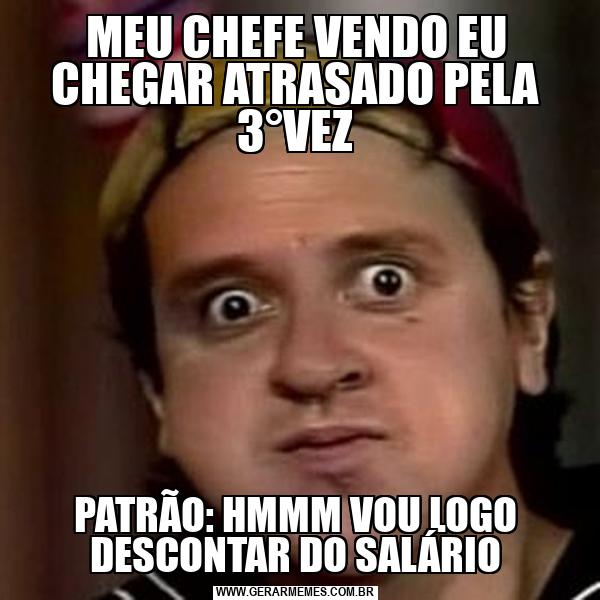 MEU CHEFE VENDO EU CHEGAR ATRASADO PELA 3°VEZ PATRÃO: HMMM VOU LOGO DESCONTAR DO SALÁRIO