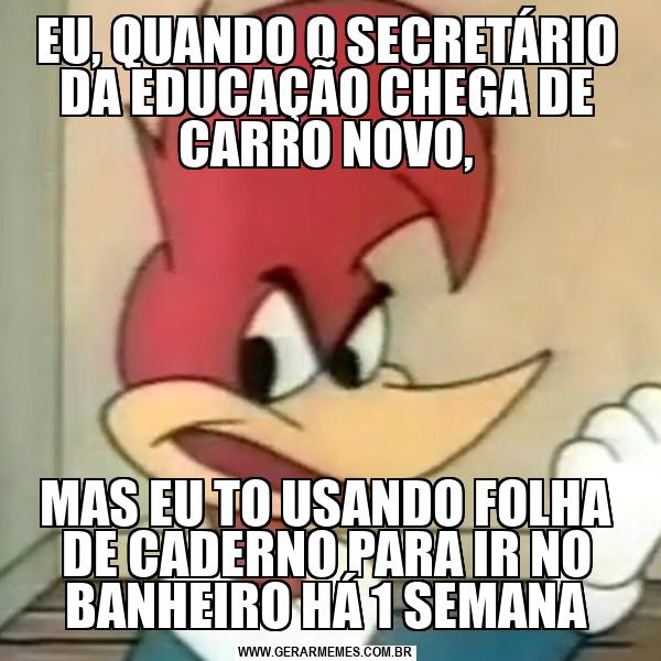 EU, QUANDO O SECRETÁRIO DA EDUCAÇÃO CHEGA DE CARRO NOVO, MAS EU TO USANDO FOLHA DE CADERNO PARA IR NO BANHEIRO HÁ 1 SEMANA